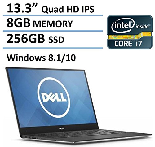 Dell XPS 13 Premium Laptop with 13.3" QHD IPS Infinity Borderless Display (3200x1800), Intel Core i7-5500U Processor, 8GB RAM, 256GB SSD, 11 hours battery life, Backlit Keyboard, Windows 8.1/10
